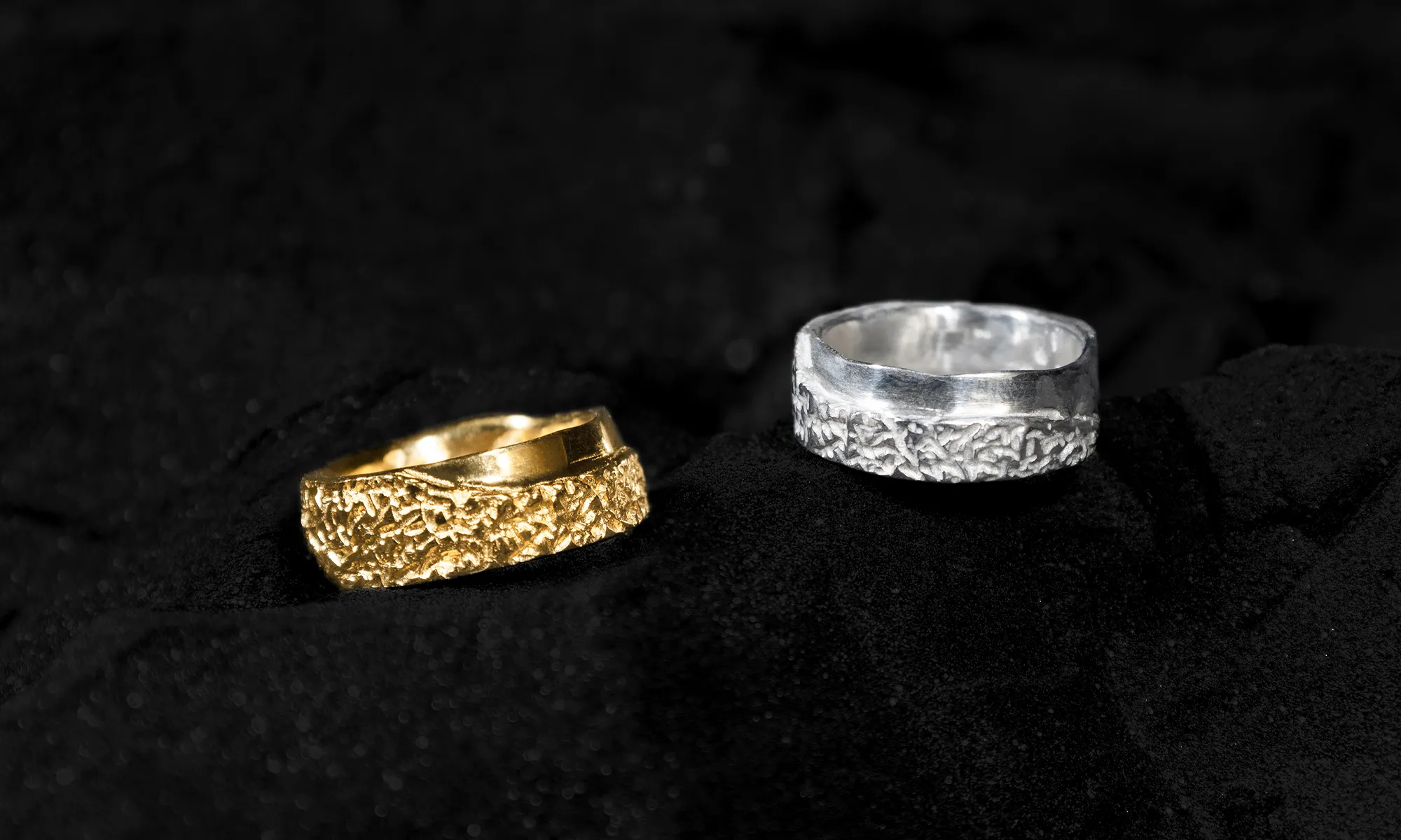 La collection ÉROSION présente ses pièces en Argent 925 et plaqué Or recyclé 24 carats.